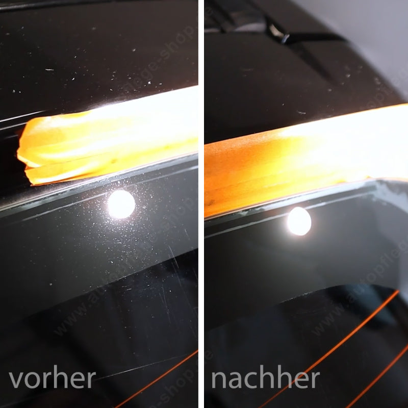 Attention - only for professionals: Of course, our Glass Polishing Pads can also be used as Orange Peel Pads. This achieves an extremely strong paint removal even on low-stroke eccentric machines and thus prepares an orange peel paint very effectively for an absolute mirror shine.