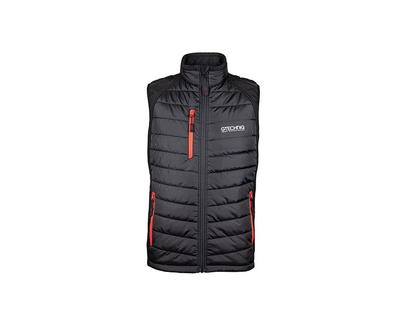 This padded gilet has the Gtechniq logo on the chest and neck with contrasting red zips. This item is made from recycled plastic bottles.