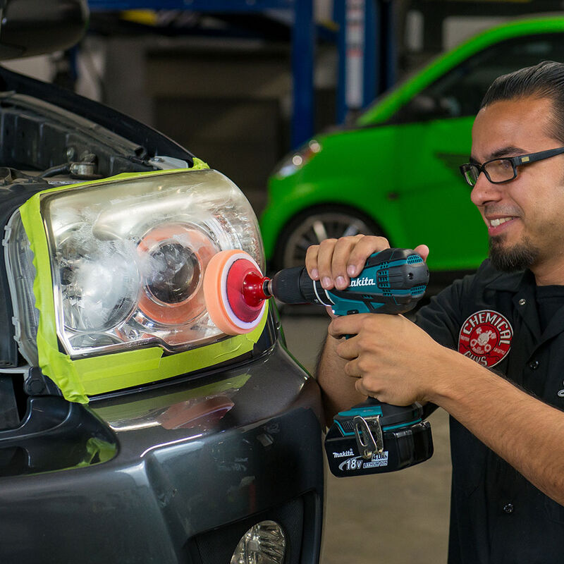 Headlight Restorer is a professional-grade polish that removes dead and faded plastic to reveal the crystal-clear plastic underneath, then protects the surface against UV rays with a layer of sealant. Regularly using this polish reduces yellowing and oxidation build up from plastic headlights and keeps your lights bright and free from discoloration.