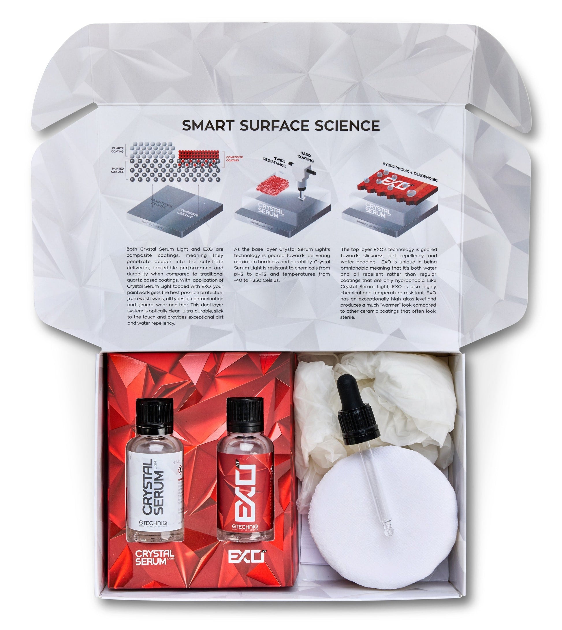 Crystal Serum Light is an excellent DIY, stand-alone coating offering unparalleled gloss and gloss retention through its superb resistance to wash swirls. However, its water repellency falls short of what EXO has to offer. Therefore, if you want the best for your car, remarkable swirl resistance and water repellency, then this kit certainly is for you.