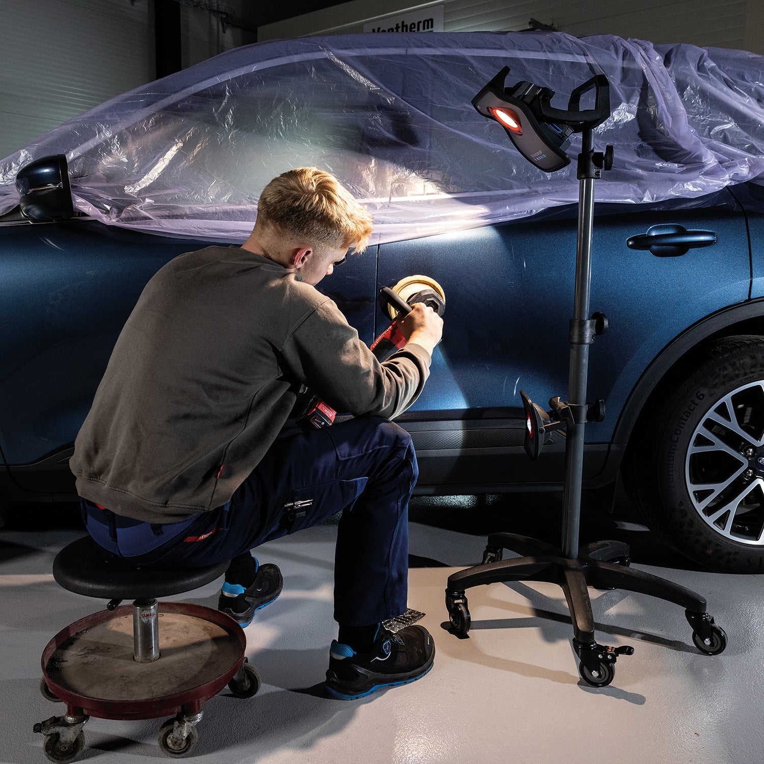 • Powerful rechargeable LED work light providing up to 8000 lumen designed for detailing and colour match
